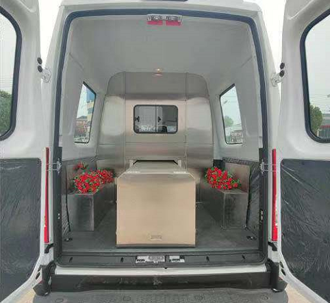 整車顏色白色,鑄鐵輪轂,手動后視鏡,安全氣囊,國六排放合資柴油機發動機,手動變速箱,帶空調,液壓方向,前門電動玻璃,ABS+EBD,三點式安全帶,織布座椅,出5座殯儀車合格證。